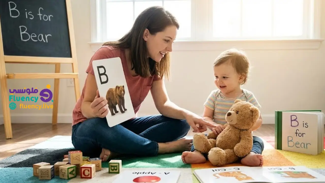 ابدأ بكلمات بسيطة: "A" مع "ant"، "B" مع "ball". هذا يربط الحرف بالمعنى، مما يسهل تعلم الكلمات. في اللغة الإنجليزية، استخدم قوائم يومية لـ5 كلمات جديدة. تعليم الحروف الانجليزية للمبتدئين يصبح أكثر فعالية بهذه الطريقة، حيث يبني مفردات أولية.